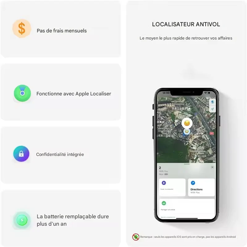 "Excellent investissement ! J'ai installé le traceur dans le sac de ma mère âgée qui a des pertes de mémoire. Grâce à ce petit appareil, je peux toujours savoir où elle se trouve. Discret, efficace et sans frais mensuels !"